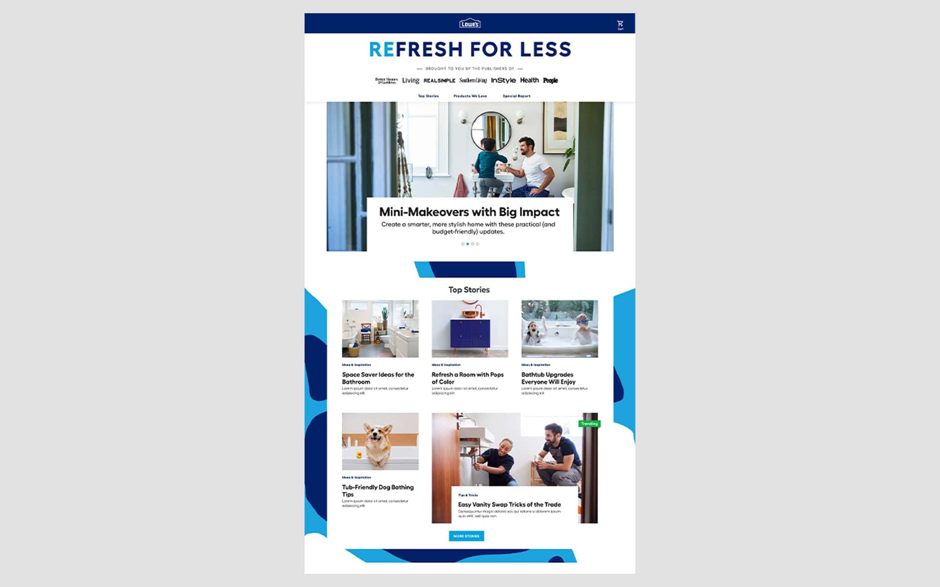 A custom digital experience establishing Lowe's as the ultimate go-to destination for DIY home improvement — featuring videos, slideshows, and original and licensed articles with shoppable links. The fully integrated campaign also included amplification of the custom content across DDM sites through targeted display media, social amplification and in-line recommendation units.